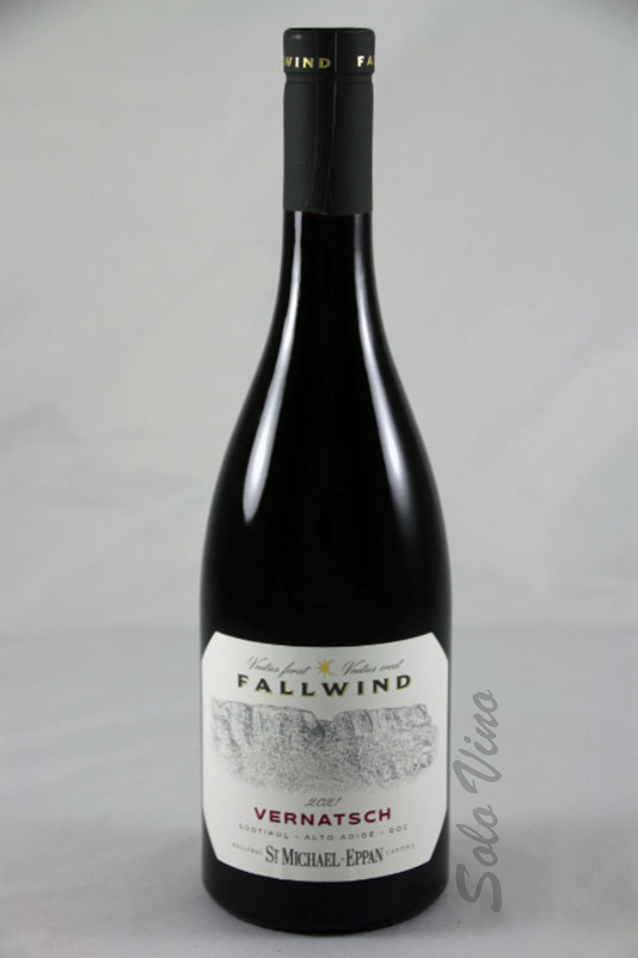Der Vernatsch war jahrhundertelang die wichtigste einheimische Rotweinsorte. Heute sind die Anbauflächen reduziert worden, um die beste Auswahl zu gewährleisten: ideal für den Vernatsch Fallwind sind die nach südosten und südwesten ausgerichteten Hänge rund um die Weinstraße. Dieser Vernatsch ist ein frischer, fruchtiger Wein mit einem feinen Aroma von Bittermandel, geschmeidig und elegant. Er schmeckt zu Vorspeisen und Südtiroler Gerichten wie beispielsweise